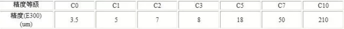 精度表示方法是:無論您的滾珠絲杠有多長,任何300mm的段,誤差都在等級精度內(nèi),每個等級的精度如下: