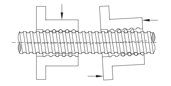 當偏荷重現(xiàn)象發(fā)生時,將直接影響螺桿的壽命及噪音,且多伴隨著運轉(zhuǎn)不順的手感,若螺桿空載時與組裝后的順暢度不同,除了注意螺桿本身的精度外,大多是組合精度不良所產(chǎn)生偏荷重現(xiàn)象。