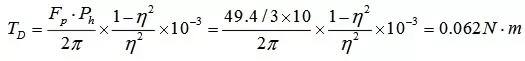 Fp — 滾珠絲桿副間的預(yù)緊力,F(xiàn)p = F max/3 = 49.4/31 = 6.47N
