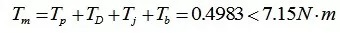 所選擇電機(jī)額定扭矩為7.15N.m,大于計(jì)算電機(jī)總扭矩3倍以上。所選擇電機(jī)扭矩符合要求。