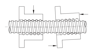 當(dāng)偏荷重現(xiàn)象發(fā)生時(shí),將直接影響滾珠絲桿的壽命及噪音,且多伴隨著運(yùn)轉(zhuǎn)不順的手感,若螺桿空載時(shí)與組裝后的順暢度不同,除了注意螺桿本身的精度外,大多是組合精度不良所產(chǎn)生偏荷重現(xiàn)象,如圈所示